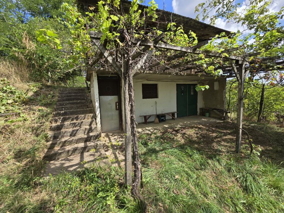 Na zemljištu nalazi se glavni objekt sa oko 35m2 + podkrovlje za ostavu te pomoćni objekt za ostavu (šupa)