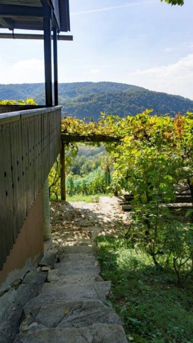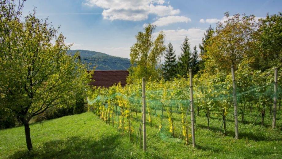 Prodaje se vikendica s vinogradom i okućnicom. Vikendica je na vrhu brda s predivnim pogledom. Nalazi se šezdesetak kilometara od Zagreba. Asfaltirani put vodi do samog objekta gdje ima mjesta za parkiranje više vozila. U potpunosti je legalizirana, ima struju i gradski vodovod, a moguće je spojiti i plin. Vikendica ima tri etaže. Vinski podrum je ukopan pa je temperatura kroz cijelu godinu 16 stupnjeva, idealna za odležavanje vina. Uz vinski podrum je prostorija za zabave s velikim stolom za 20 ljudi i kuhinja. Ispred kuće je opločena terasa s dva velika stola ispod brajde, roštilj i peka. U srednjoj etaži je kupaonica, kuhinja i dnevni boravak s kaminom na drva, pa je ugođaj u tom prostoru zaista jedinstven. U potkrovlju je spavaća soba s balkonom. Ovo je jedno izuzetno ugodno malo imanje idealno ukoliko želite mir u prirodi, a prilagođeno je i za vesele zabave.