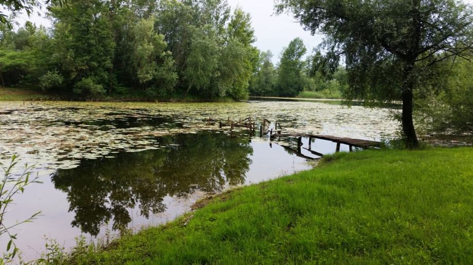 Vikendica se nalazi udaljena 800metara od asfalta, 20 metara od jezera/ribnjaka te otprilike 1 kilometar do same rijeke Drave. Idealna za opuštanje i uživanje u prirodi, te za ribolov i kupanje jer se u susjedstvu nalaze još samo dva vikend objekta. Parcela se sastoji od otprilike 800m2 okučnice te čestice od 6186m2 ispred kuće pod površinom vode s malim otočićam.