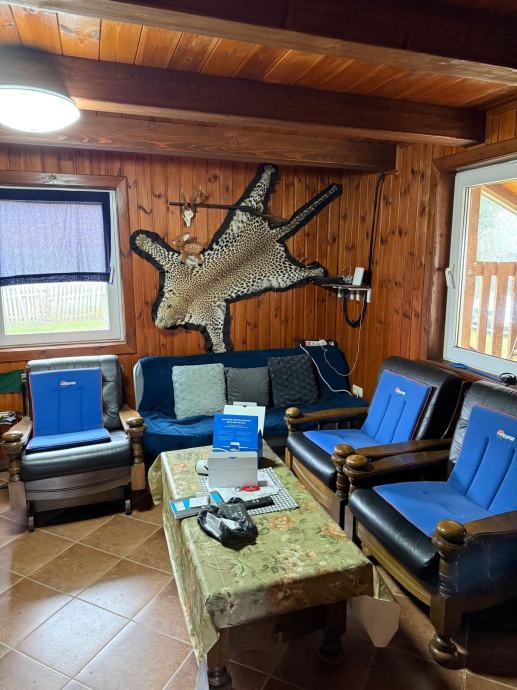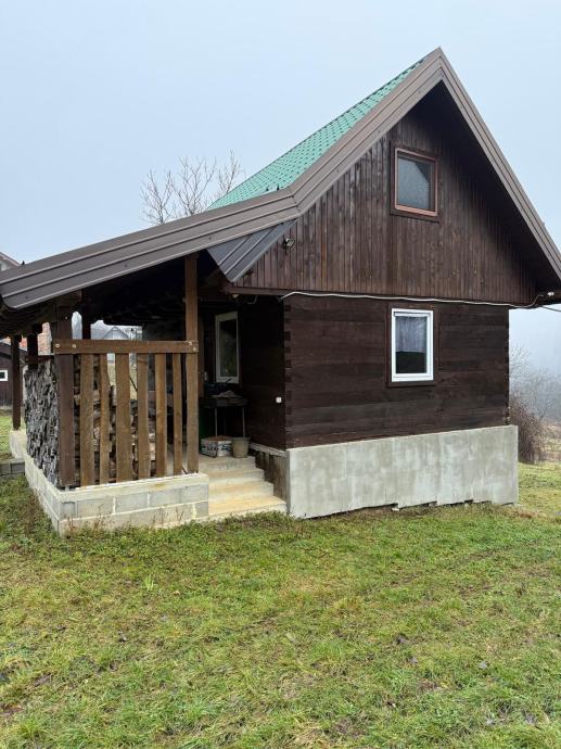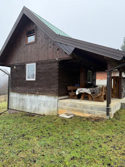 Na prodaju drvena vikendica / kuća, odmah useljiva sa svim stvarima potrebnim za život na lokaciji Sjeničak Lasinjski