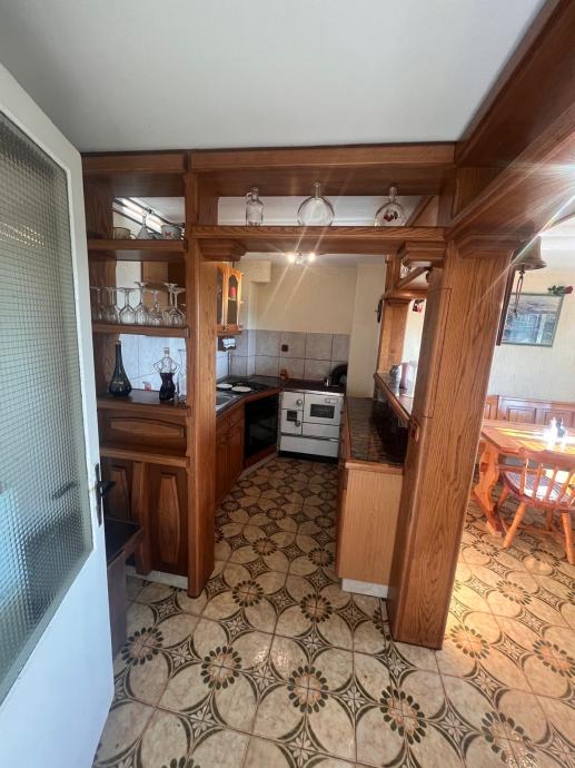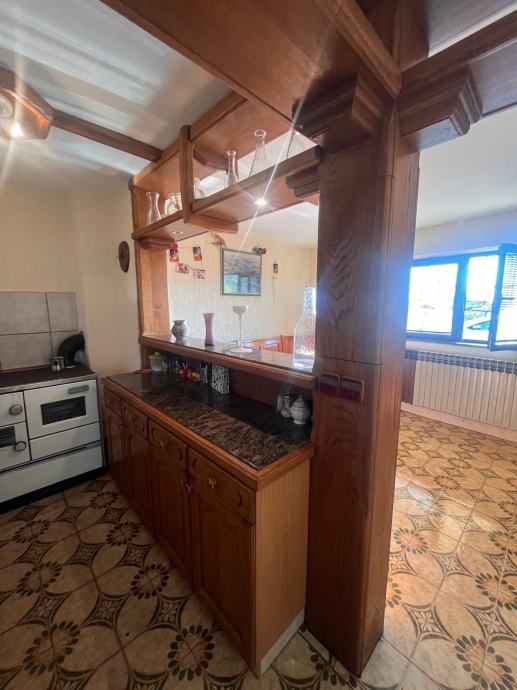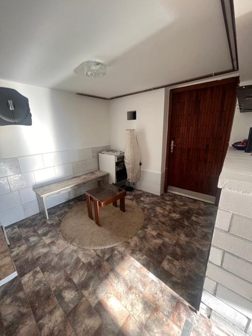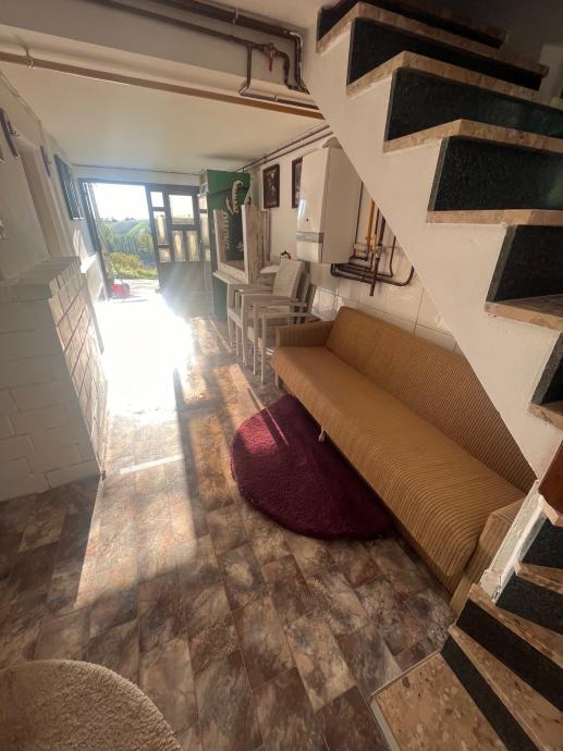 Vikendica/kuca na 2 etaže , prizemlje se sastoji od kuhinje blagavaone , vece prostorije idealne za veliki stol prilikom proslava te prostorije koja mozexslužiti kao ostava jer je zadnja strana ukopana pa ima temperaturu kao podrum .