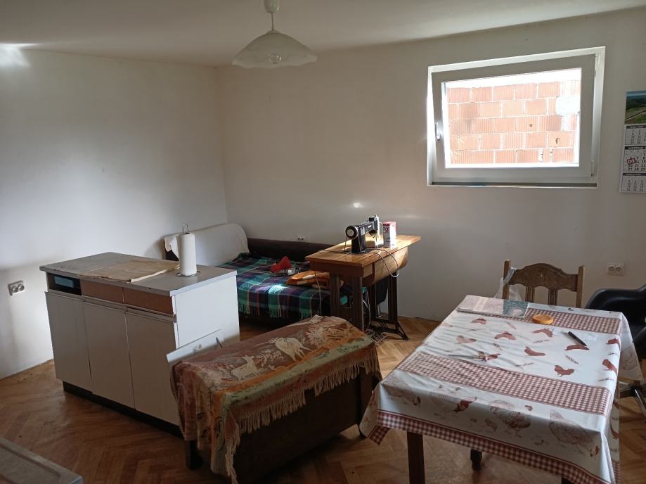 Neuređen tavan, veliki podrum ispod drvenog dijela kuće ( podrum poplavljuje kod većih kiša, treba napraviti hidroizolaciju)
