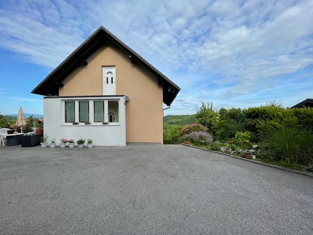 Izgrađena je na kosom terenu, parceli od ukupno 755 m² s lijepim