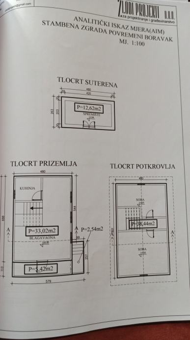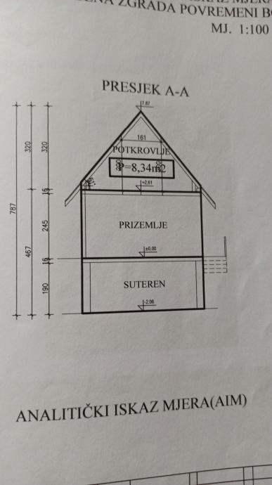 Zemljište je ukupno 1752 m2, a sama kuća je tlocrtno veličine 41m2, a stambene površine u prizemlju i katu ukupno 71m2.