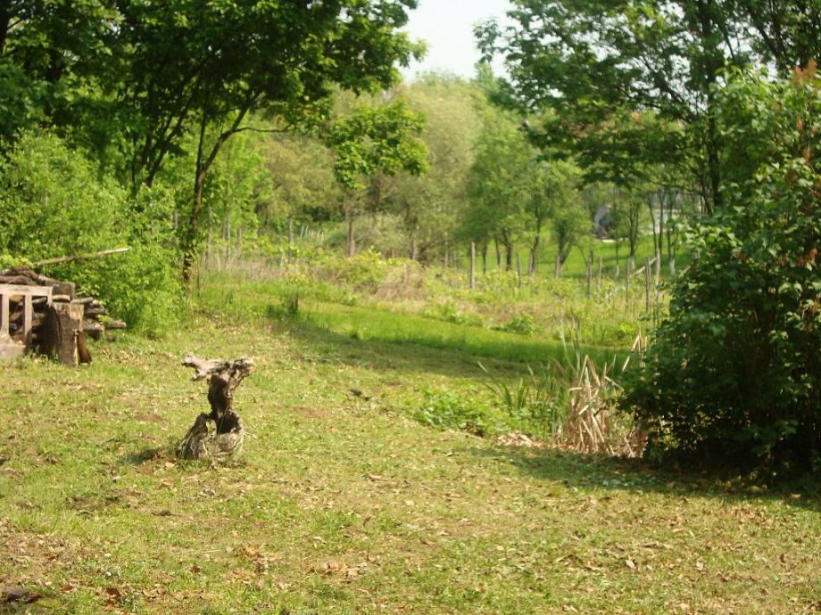 Dvoriste je 500m2, a iza kuce je šuma 1763m2. Ima prikljucak struje, ali nema prikljucak vode.