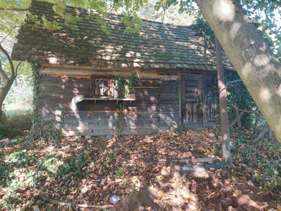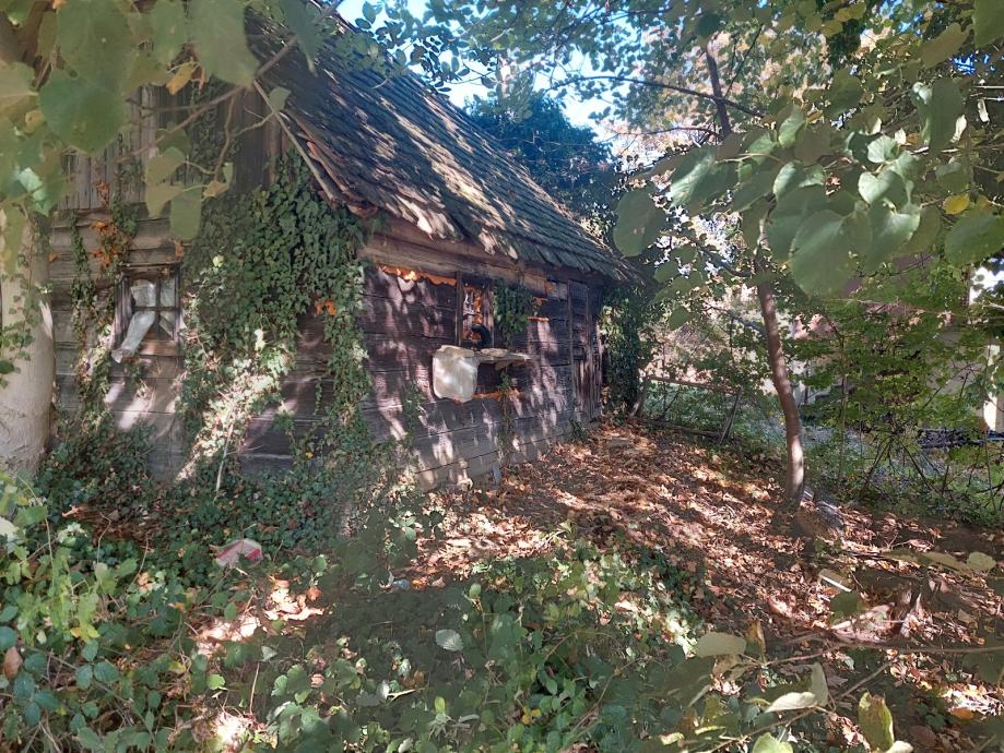 Drvena kuća 20m2( 6,15 x 3,20m) s okućnicom 1054 m2. Kuću je potrebno presloziti i staviti novi krov.