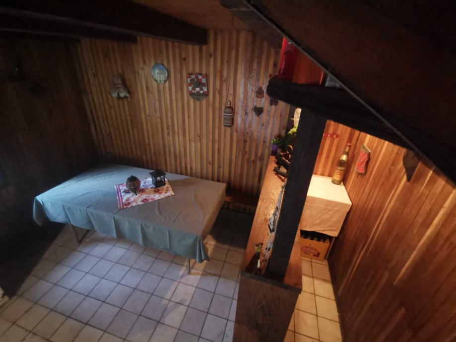 Sastoji se od spavaće sobe na katu, dnevne sobe, kupaonice koja zahtijeva renovaciju te terase s koje se pruža otvoreni pogled na Tuheljske Toplice i okolne brežuljke. Nekretnina je idealna za bijeg od gradske gužve i uživanje u prirodi – okružena je drvećem i netaknutim zelenilom, pružajući potpuni mir i privatnost.