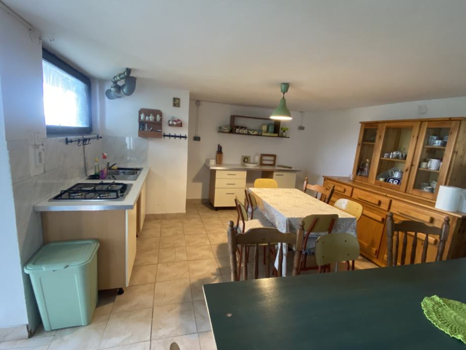 Suteren: ljetna kuhinja, toalet, spremište, izlaz na terasu, spremište za drva i alatnica, vanjskim stepenicama se ide u prizemlje.