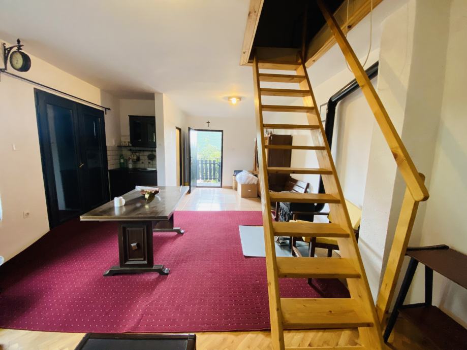 Prizemlje: Dnevni boravak, čajna kuhinja, kupaona s toaletom, unutarnjim stepenicama se ide u potkrovlje kuće.