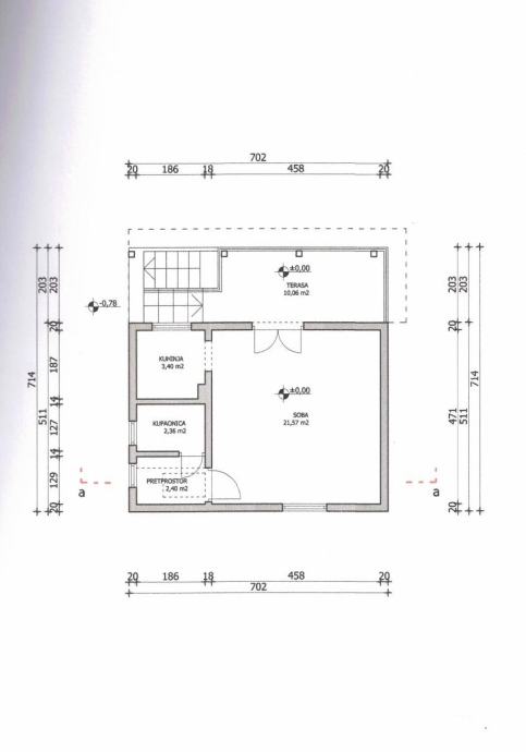 Podrum ima 5,10 m2, prizemlje 44,22 m2 i potkrovlje 22,26 m2, sveukupno neto korisna površina 71,58 m2.