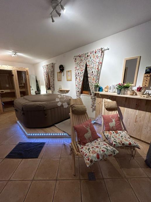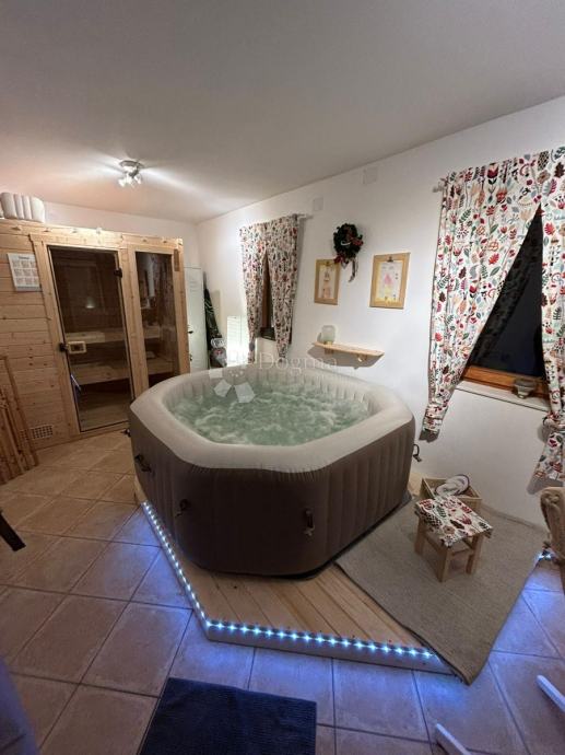 Prizemlje (suterenska etaža): Ovdje se nalazi spa (wellness) prostor opremljen jacuzziem, saunom i dijelom za opuštanje, savršen za privatne trenutke odmora i regeneracije.