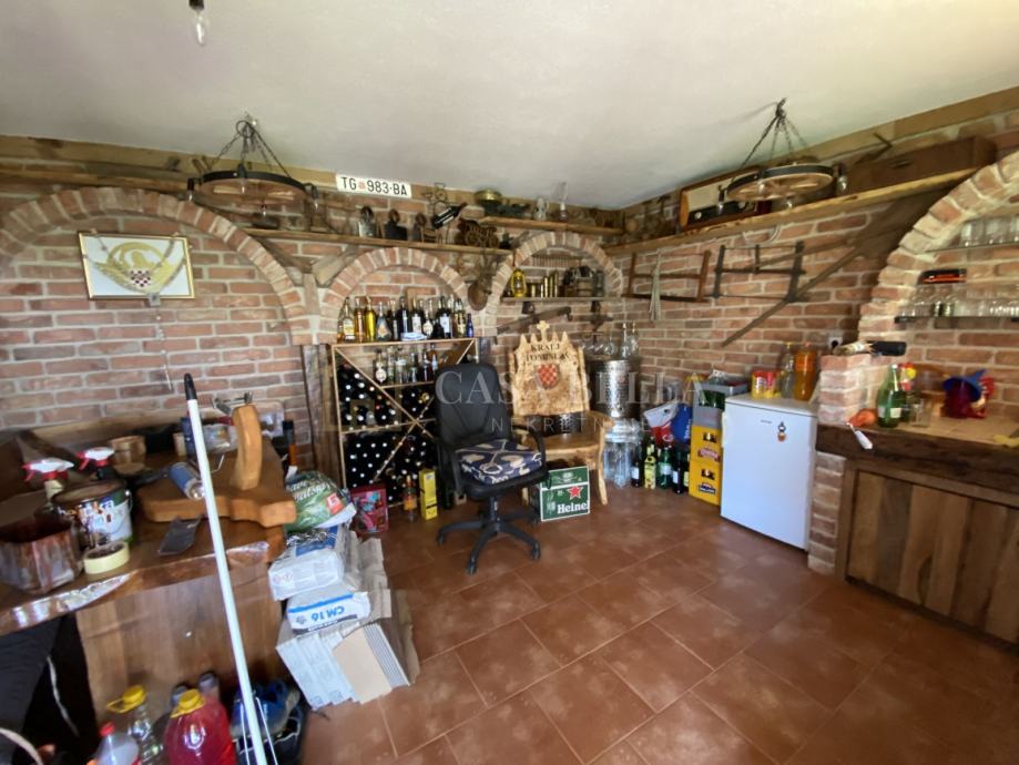 Vikendica se sastoji od prostranog podruma sa kuhinjom koji je obložen ciglom i drvom. Vikendica ima još veliku prostranu pečenjaru, drvarnicu, pušnicu za meso , šupu te manji wc u donjem dijelu.