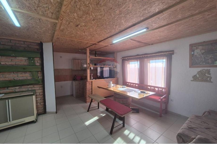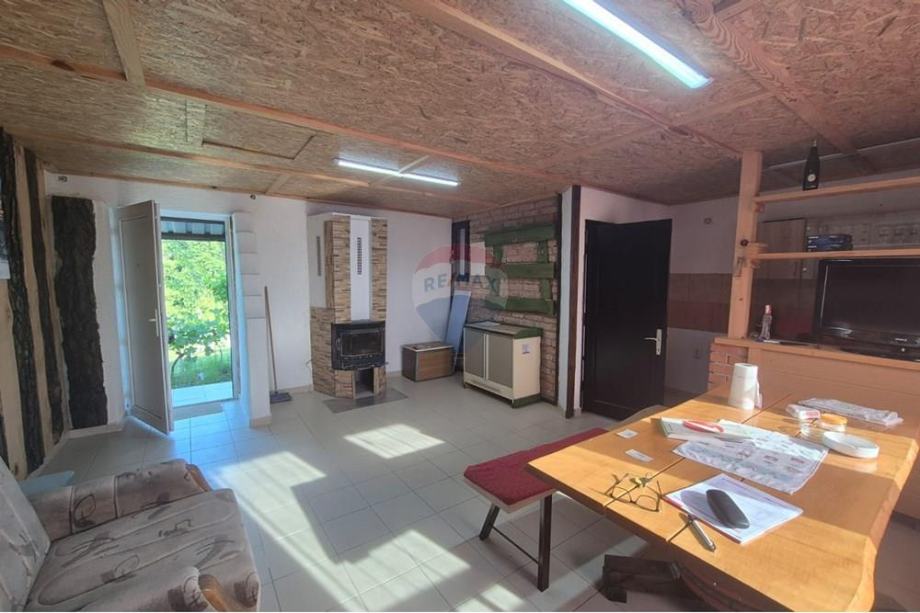 Ukupne stambene površine od 80 kvadratnih metara, vikendica sadrži 1 sobu, u visokom prizemlju koje obuhvaća kuhinju i otvoreni dnevni prostor s prekrasnim pogledom - idealno za uživanje u prirodi. Nadalje, tu je i rustikalno grijanje na kruta goriva, što dodatno osigurava ugodan boravak tijekom hladnijih mjeseci. Unutarnje stepenište nas spušta u podrumski dio gdje nalazimo hodnik, jednu prostoriju koja služi kao spremište i dodatno odvojena prostorija - sanitarni čvor.
