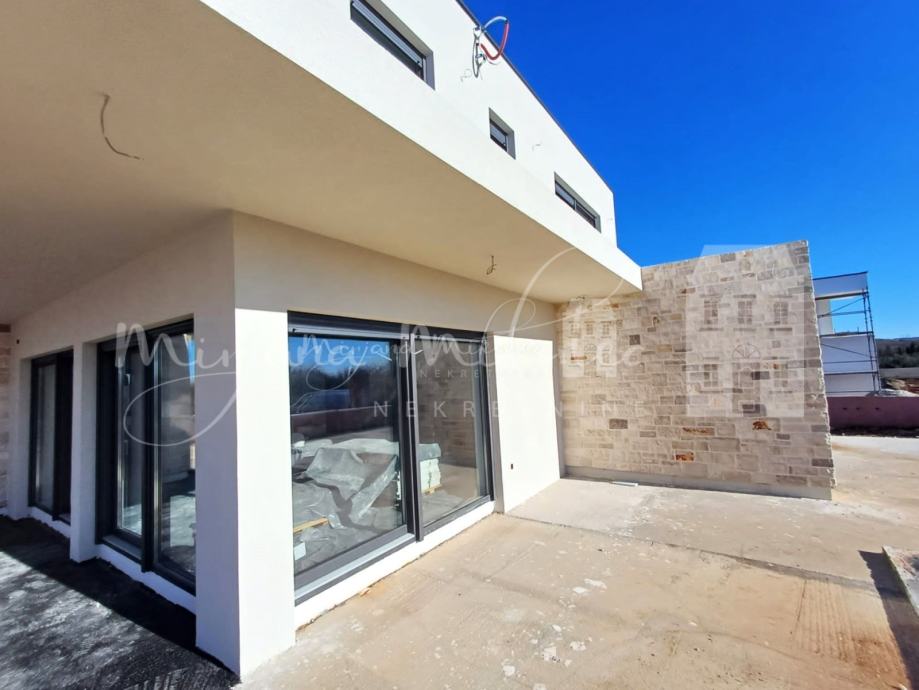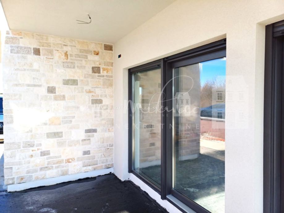 Sva stolarija ( unutarnja i vanjska) je antracit, komarnici, klizne stijene, PVC troslojno staklo.Grijanje je putem dizalice topline, podno grijanje i priprema za solarne panele.