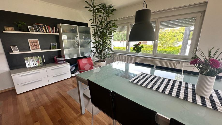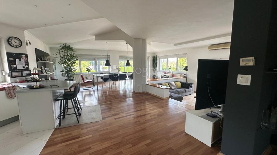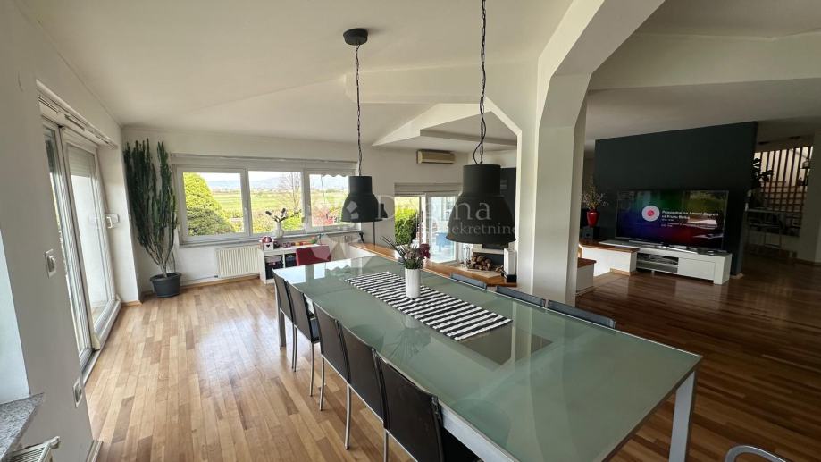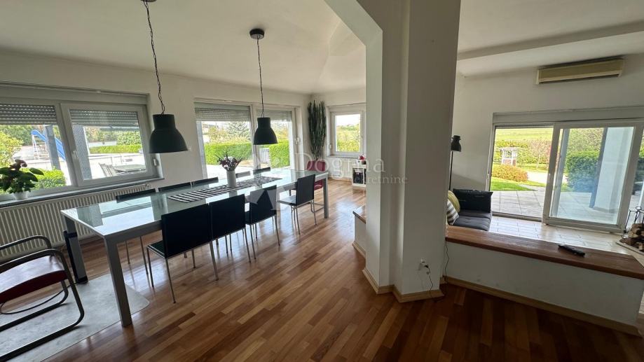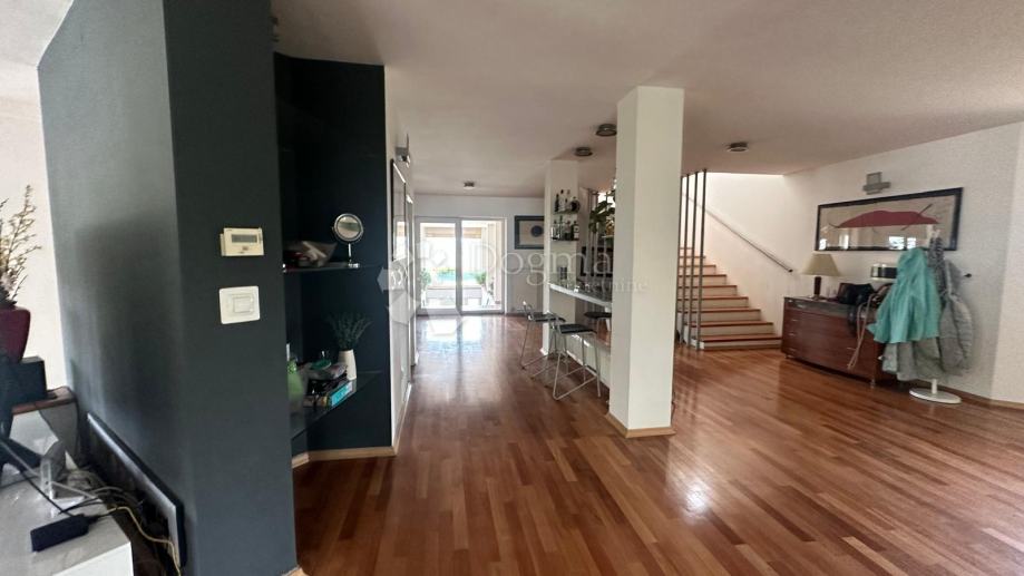 Već pri prvom pogledu, vila ostavlja snažan dojam svojim skladnim dizajnom, hortikulturno uređenim vrtom i mirnom pozicijom na blagoj uzvisini. Unutarnji prostori pažljivo su raspoređeni kroz tri etaže – u prizemlju se nalaze velika garaža za četiri vozila, tehnički prostori, prostor za rekreaciju i druženje, te elegantan vinski podrum. Na glavnoj etaži dominira prostrani dnevni boravak s kaminom, povezan s kuhinjom i blagovaonicom u otvorenom konceptu, radna soba te velika terasa pretvorena u zimski vrt s prostorom za biljar. Gornji kat nudi tri luksuzne spavaće sobe, svaka s vlastitom kupaonicom i garderobom, pružajući potpuni komfor i privatnost.