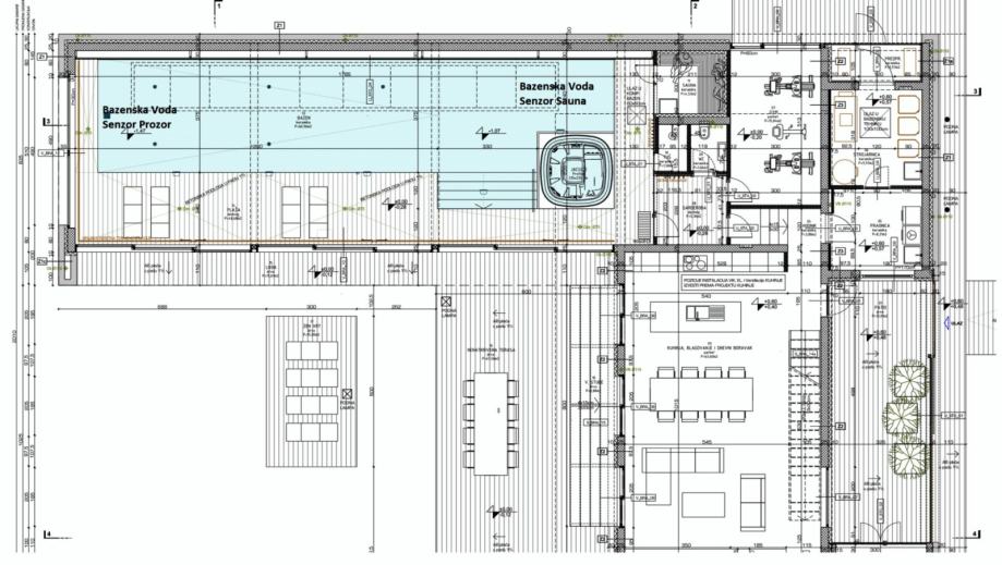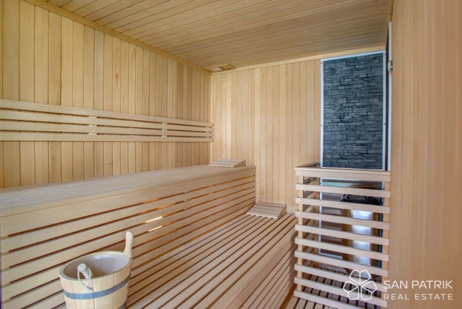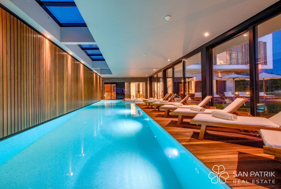 Srce vile svakako je impresivni zatvoreni bazen dug 18 metara, idealan za sportsko plivanje. Bazen je okružen prostranim prostorom koji se tijekom ljeta može potpuno otvoriti, a zimi zatvoriti, pružajući savršen ambijent za opuštanje tijekom cijele godine. Osim bazena, budući vlasnici mogu uživati u wellness zoni koja uključuje teretanu i saunu, idealne za opuštanje i brigu o tijelu i duhu.
