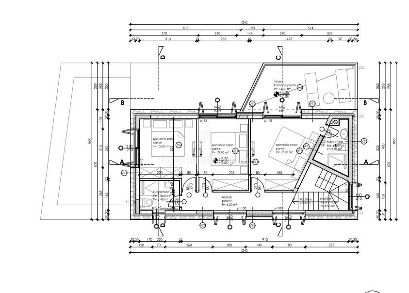 1.Kat: 3 spavaće sobe, 2 kupaonice, terasa.