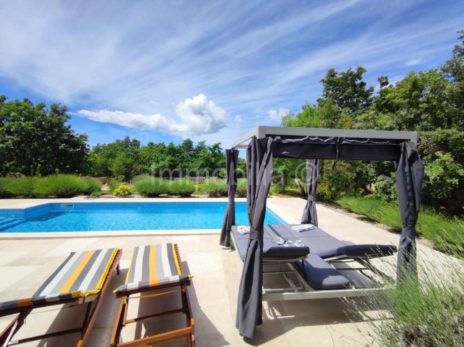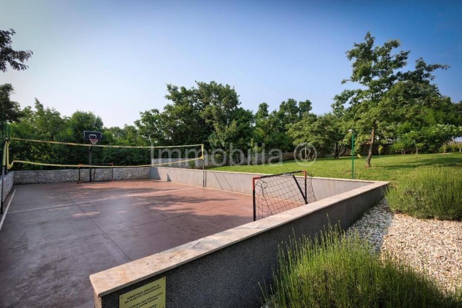 Bazen veličine: 36m2, terasa oko bazena je 100m2 - Natkriveni gril kamin sa stolom za sjedenje , veličina cca 20m2. - Natkriveni parking za dva automobila, te dodatan parking za još dva vozila, ukupna površina parkinga cca 100m2 - dječje multifunkcionalno igralište sastoji se od ljuljačke, tobogana, penjalice i još ponekoga sadržaja.