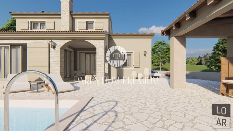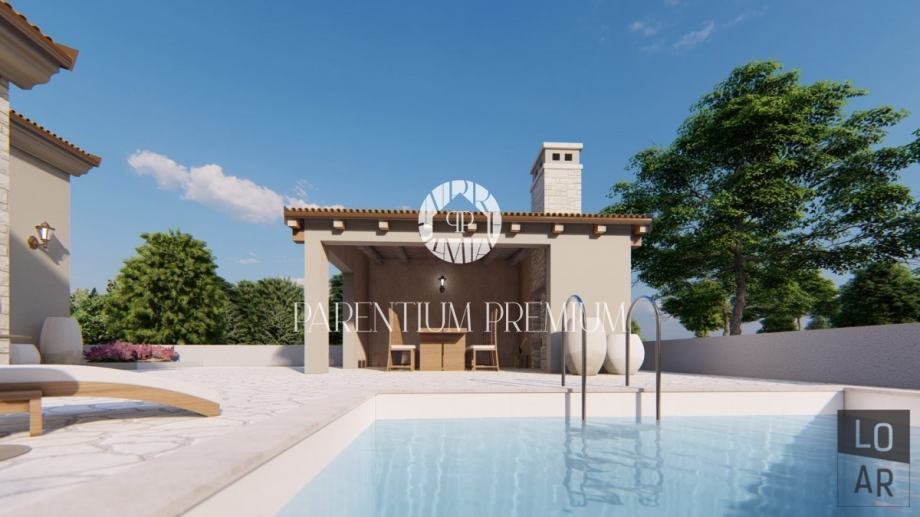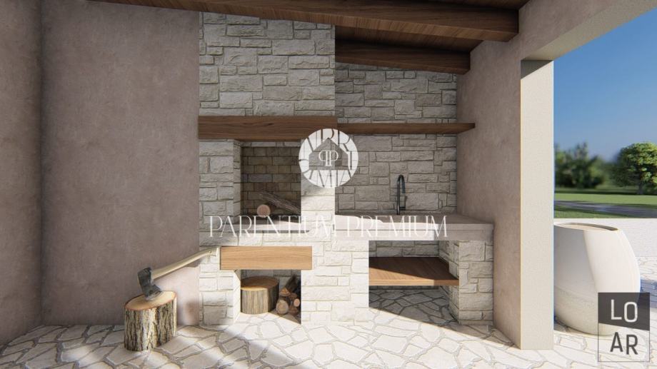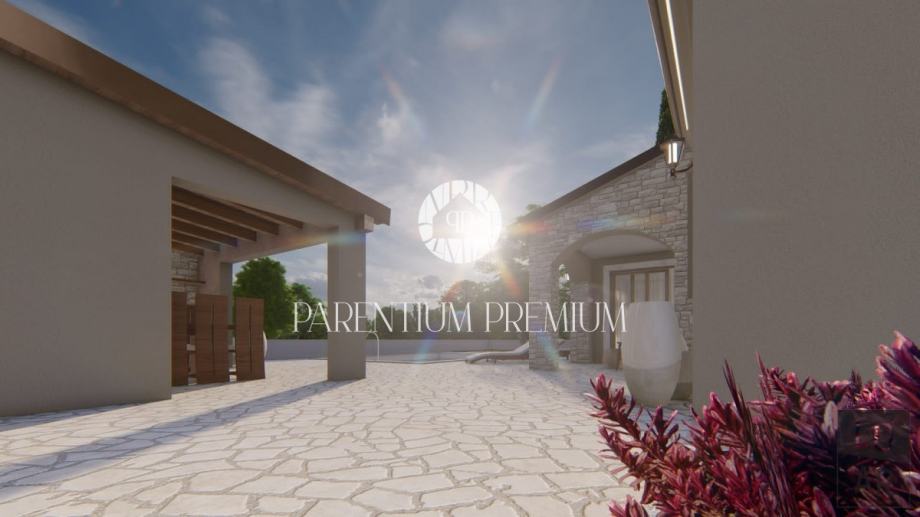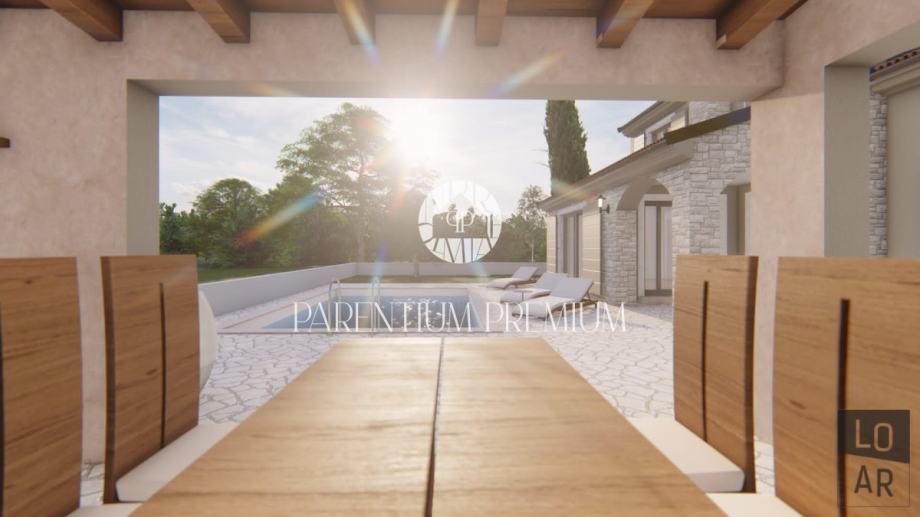 Iz dnevnog dijela izlazi se na terasu koja je natkrivena dok će dvorište biti uređeno mediteranskim stilom sa velikim bazenom i sunčalištem odličnim za ljetna uživanja uz ljetnu kuhinju koja upotpunjuje cijelu priču.