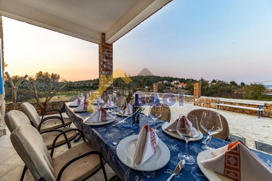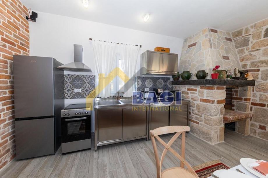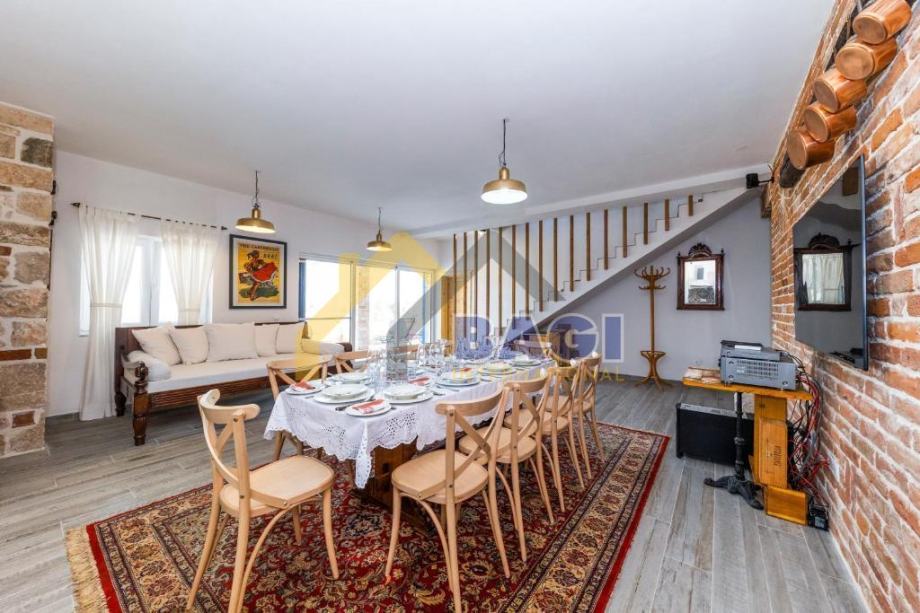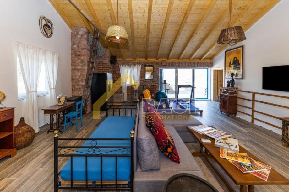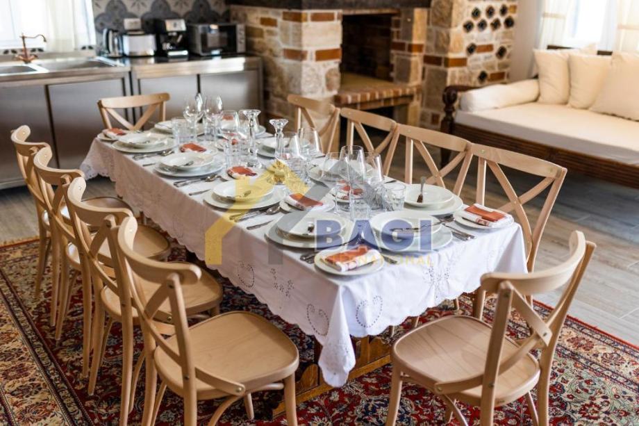Dva prostrana dnevna boravka nude dovoljno prostora za druženje i opuštanje. Profesionalno opremljena kuhinja omogućava pripremu ukusnih obroka za vas i vaše goste. Dodatni sadržaji uključuju vanjsku dimnu kuhinju koja je opremljena vrhunskom opremom za roštiljanje i pripremu obroka na otvorenom.