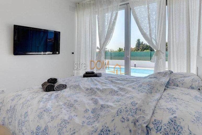 Na uređenoj okućnici nalazi se grijani bazen od 38 m² te sunčalište, savršeno za opuštanje i uživanje u sunčanim danima. Vila se prodaje u potpunosti namještena novim i kvalitetnim namještajem.