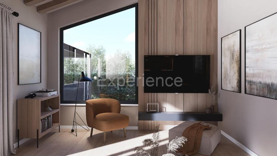 Pažljivo dizajniran interijer – svijetao prostor i udobnostCjelokupni stambeni prostor proteže se na jednoj etaži, ukupne neto površine 150 m², te dodatnih 95 m² vanjskog prostora – bazen, sunčalište, lounge zona i natkrivena vanjska kuhinja čine savršen okvir za život u skladu s prirodom.