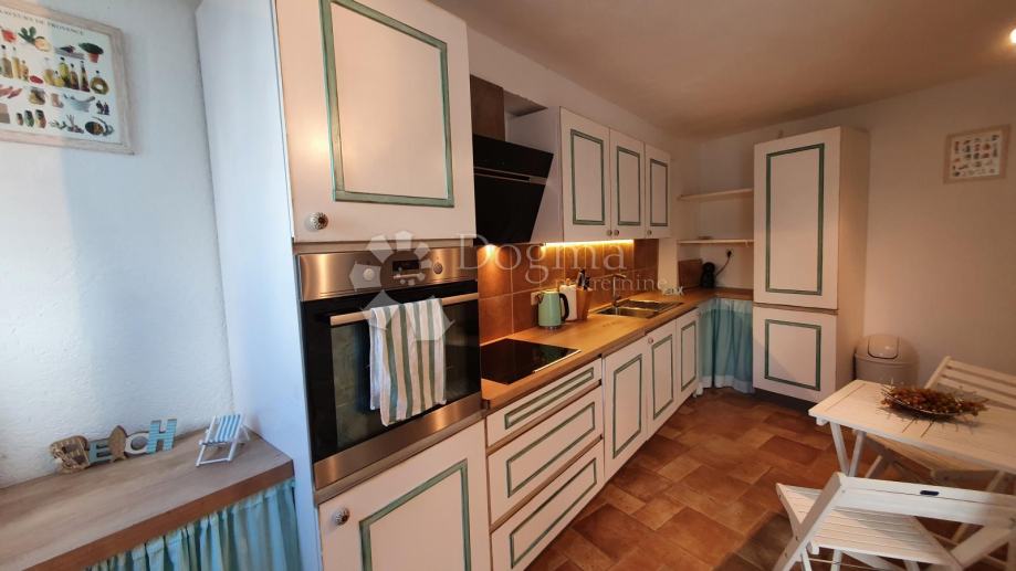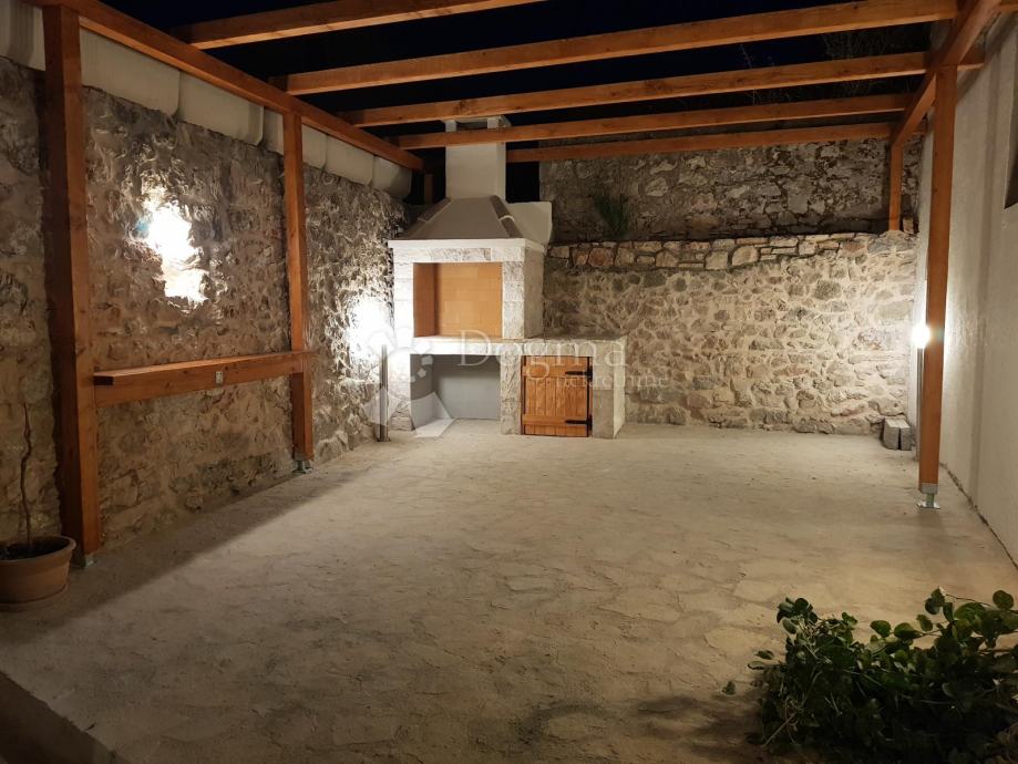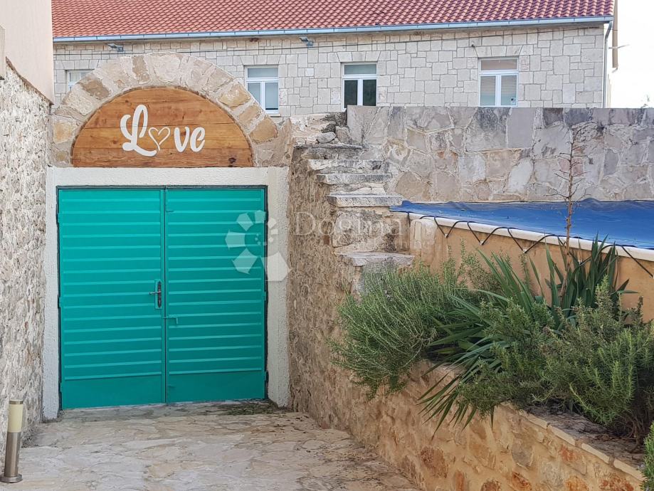 Ulaskom u dvorište Vile, ispod kamenog starinskog volta, s lijeve strane dočekat će vas veliki bazen. U nastavku kuće su dvije cjeline za odmor, lounge zona za opuštanje pored bazena i prostora s ručno rađenim kaminom i drvenom nadstrešnicom za druženje s prijateljima. U prizemlju unutar kuće ulazi se u prostor za blagovanje s velikim drvenim stolom za 6 osoba, odmah do blagavaone je kuhinja u retro stilu. U dnevni boravak se ulazi kroz stara tirkizna drvena vrata te ćete se naći u kamenom prostranom dnevnom boravku sa starinskim uređenim namještajem u shabby chic stilu. U sklopu dnevnog boravka nalazi se gostinjski wc uređen u istom stilu. Iz prizemlja, pored blagavaone, kroz otvor u podu, vode stepenice u oazu morskih dubina. Stara gustirna je u potpunosti prilagođena odmoru za dušu i tijelo, dajući nevjerojatan osjećaj mira i spokoja te smo je stoga nazvali Dive&Relax Zone.
