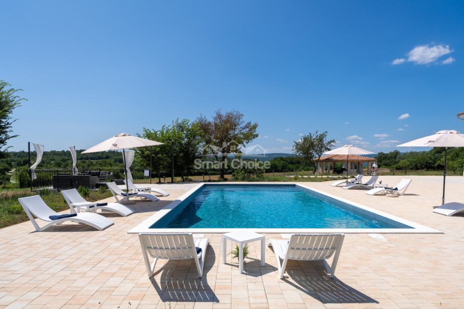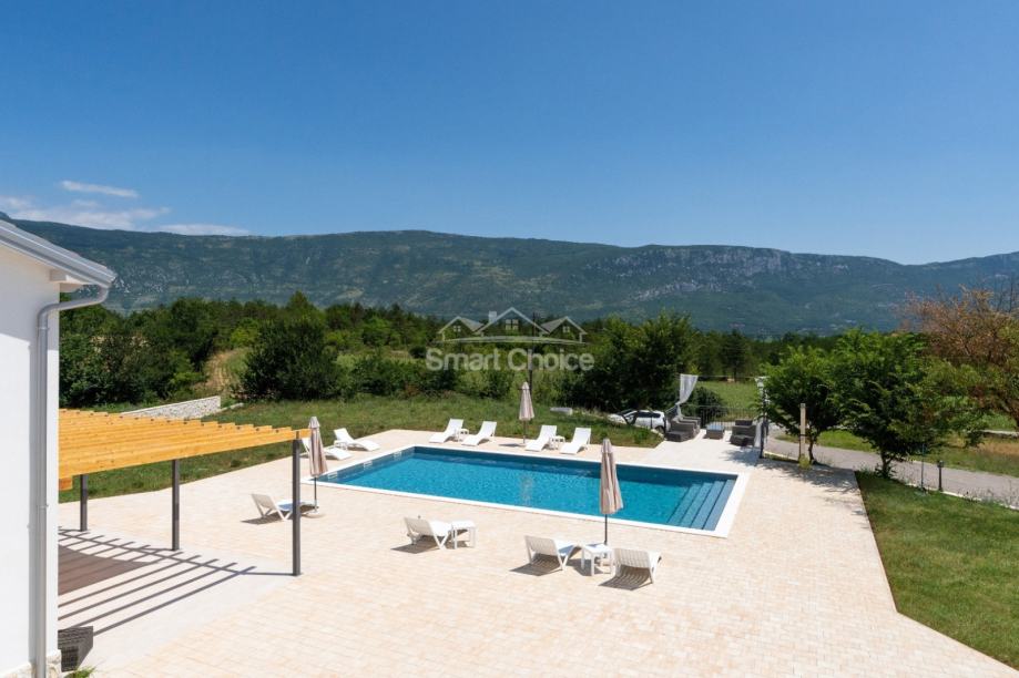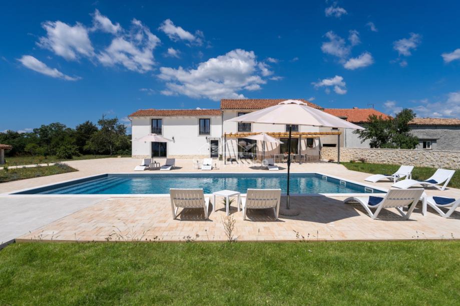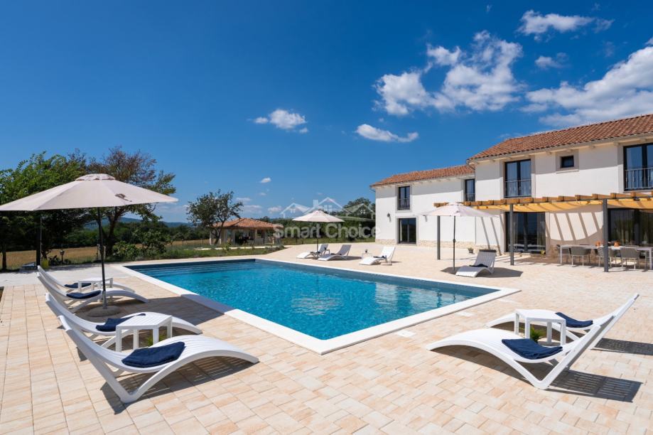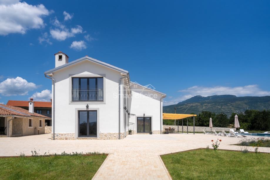Vila s bazenom 18km od mora - u srcu Kršana, u mirnom naselju Kostrčani, nalazi se dvojna kuća s izuzetnim potencijalom za najam. Smještena na prostranoj parceli od 1800 m2, ova nekretnina savršeno spaja komfor i prirodni ambijent.
