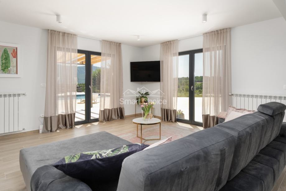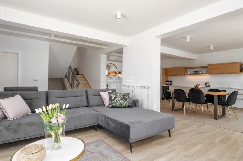 Kuća se ističe i dodatnim sadržajima kao što su balkon, vrt, terasa, podrum, konoba i dvorište, pružajući brojne mogućnosti za opuštanje i uživanje na otvorenom. Posebnu pažnju privlači bazen koji je savršeno mjesto za osvježenje tijekom toplih ljetnih dana.