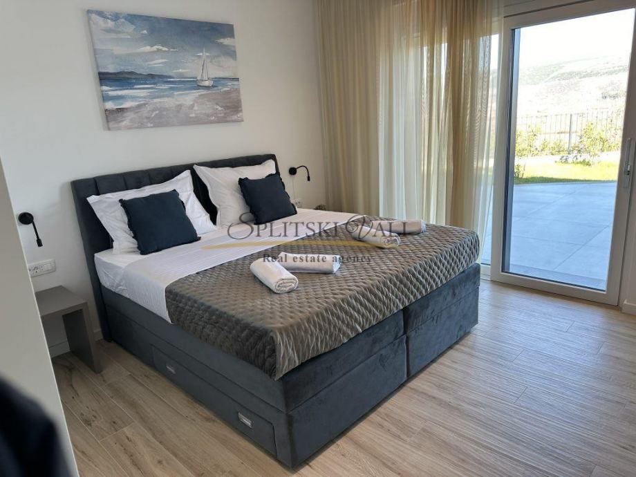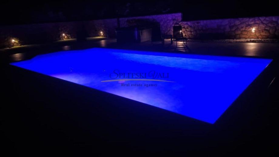 Prodaje se vila u Imotskom. Vila ima bruto površinu 180 m2 ( 150 m2 neto površine), sa tri spavaće sobe ( svaka sa kupaonicom), i dodatnim wc-om, saunom i jacuzzijem. Uz vilu se nalazi bazen površine 33 m2 sa slanom vodom. Objekt ima podno grijanje, klima- sustav te električne rolete. Ima prekrasan pogled na Imotsku krajinu, grad Imotski, jezera i Hercegovinu te se nalazi u novoizgrađenom naselju s kompletnom infrastrukturom (šetnica, rasvjeta), te pripadajuću prostranu okućnicu od 1200 m2, koja uključuje i parking za više auta. Prvo useljenje. Udaljenost od Makarske rivijere je 25 km. S obzirom na odličnu lokaciju, objekt je vrhunska investicija, u novoizgrađenom elitnom turističkom naselju te je povrat investicije od turističkog najma moguć unutar deset godina. Kupac ne plaća porez na promet nekretnina.