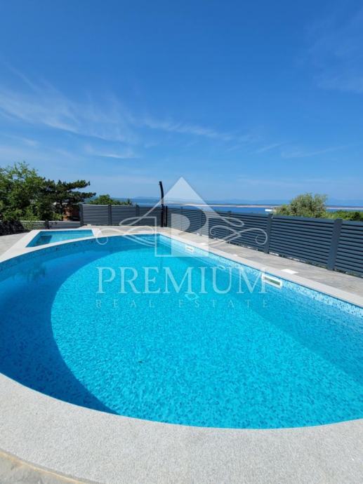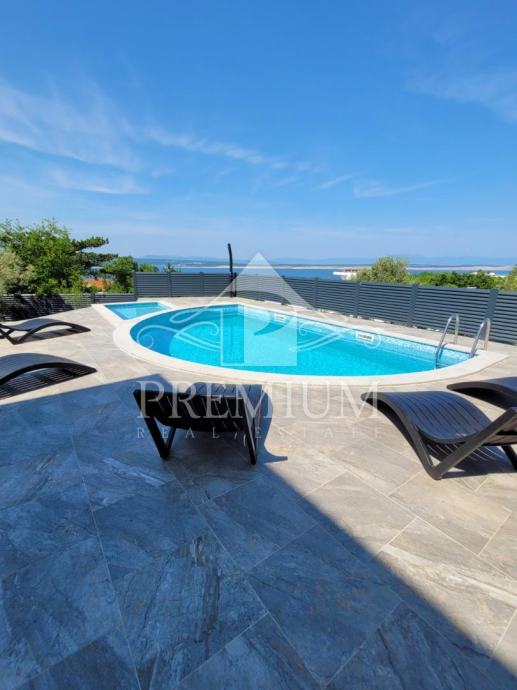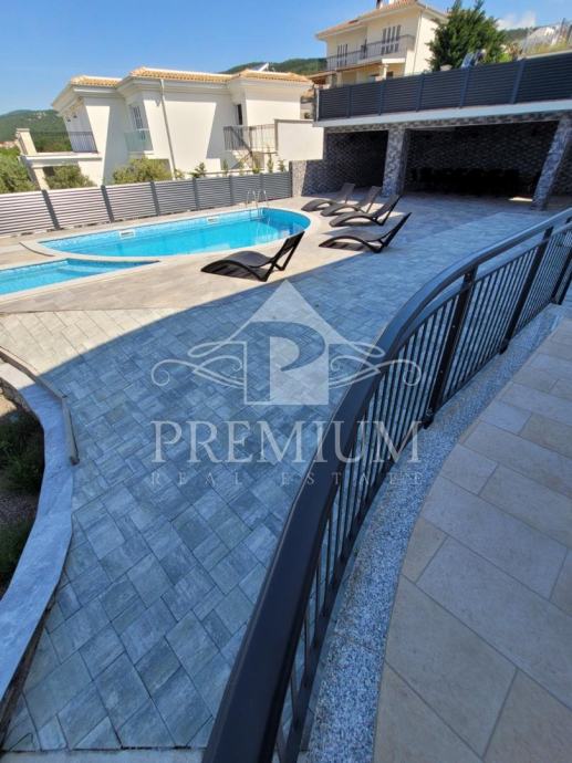 Jedan veći i jedan manji bazen sa sunčalištem dominiraju dvorištem a u stražnjem dijelu kuće se nalazi ljetna kuhinja sa roštiljem i velikim jedaćim stolom.