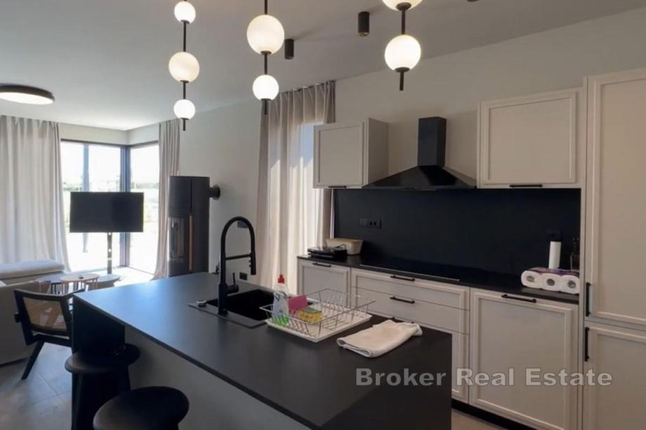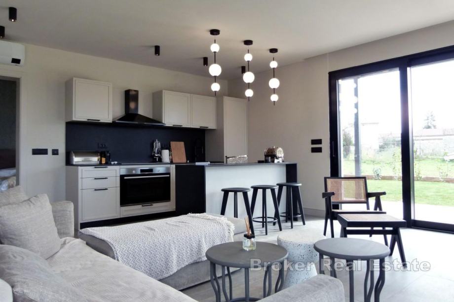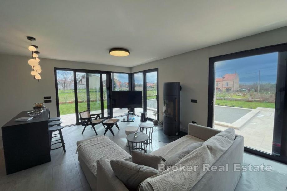 U prodaji je novosagrađena, potpuno uređena i vrhunski opremljena vila s bazenom. Cijeli unutarnji prostor klimatiziran je, a grijanje je podno, što omogućuje ugodan boravak tijekom cijele godine.