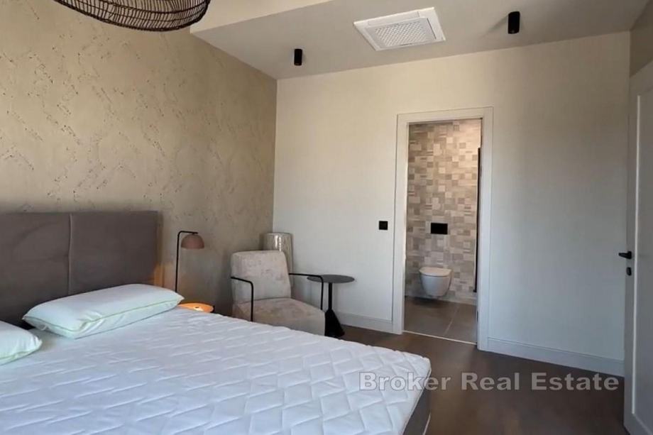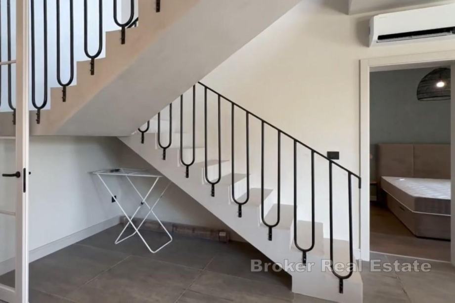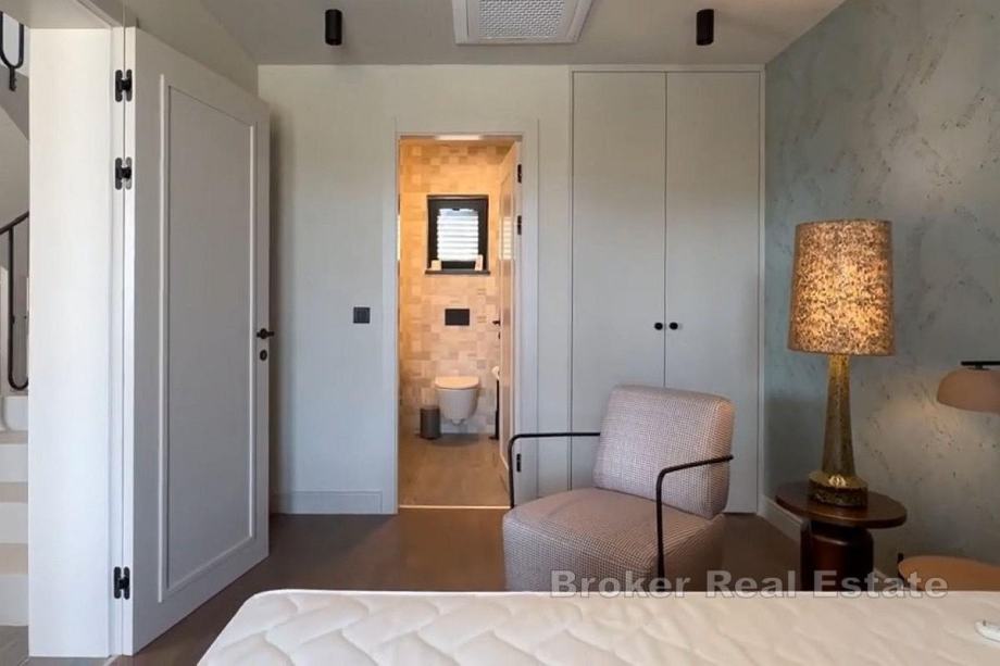 Kat (42 m²): dvije spavaće sobe, svaka s vlastitom kupaonicom, te velika terasa koja pruža dodatni prostor za odmor i uživanje.