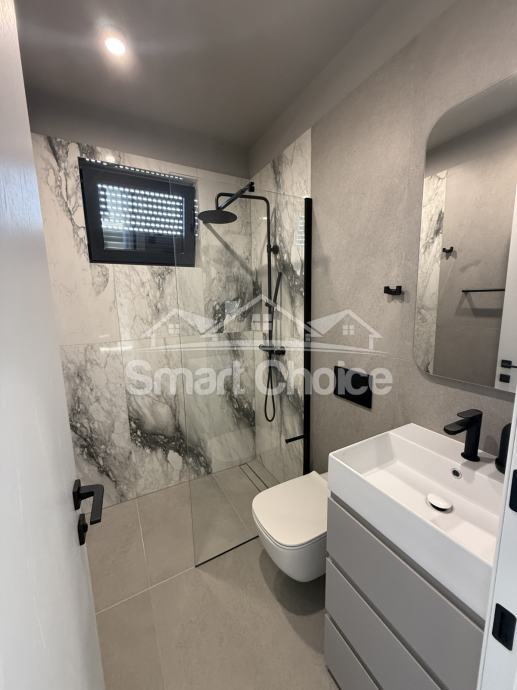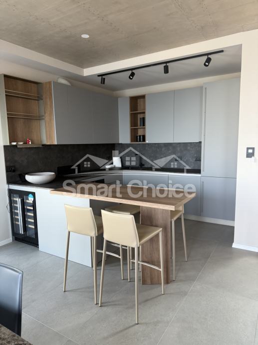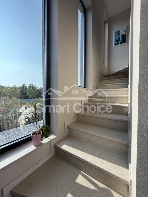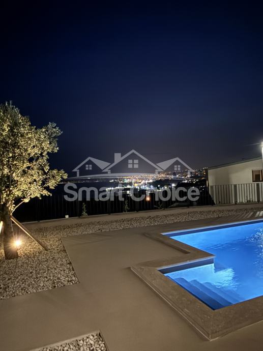 Kostrena - ekskluzivna novosagrađena vila s bazenom na odličnoj lokaciji u Kostreni. Sastoji se od velike garaže, konobe i spremišta u prizemlju. Iz garaže unutarnjim stubištem dolazimo u prostrani dnevni boravak koji je spojen s kuhinjom i blagovaonom sa izlazima na dvorište i bazen, te s druge strane izlaz u ljetnu kuhinju s kaminom. Na toj etaži se još nalaze soba, wc, praona i stubište koje vodi na kat gdje su smještene 3 sobe sa kupaonama i terase. Svaka prostorija ima klimu, te podno grijanje na dizalicu topline. Smart sustav održavanja i praćenja kuće sa svim funkcijama. Vrhunska tehnologija i izvedba. Kuća ima i vanjski parking za nekoliko automobila. Prekrasan pogled, mirna lokacija s jako puno sunca.