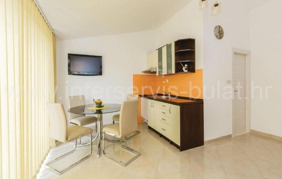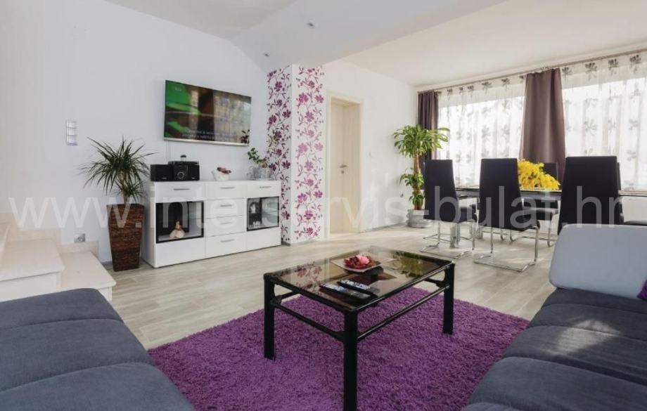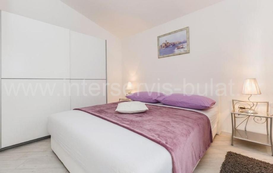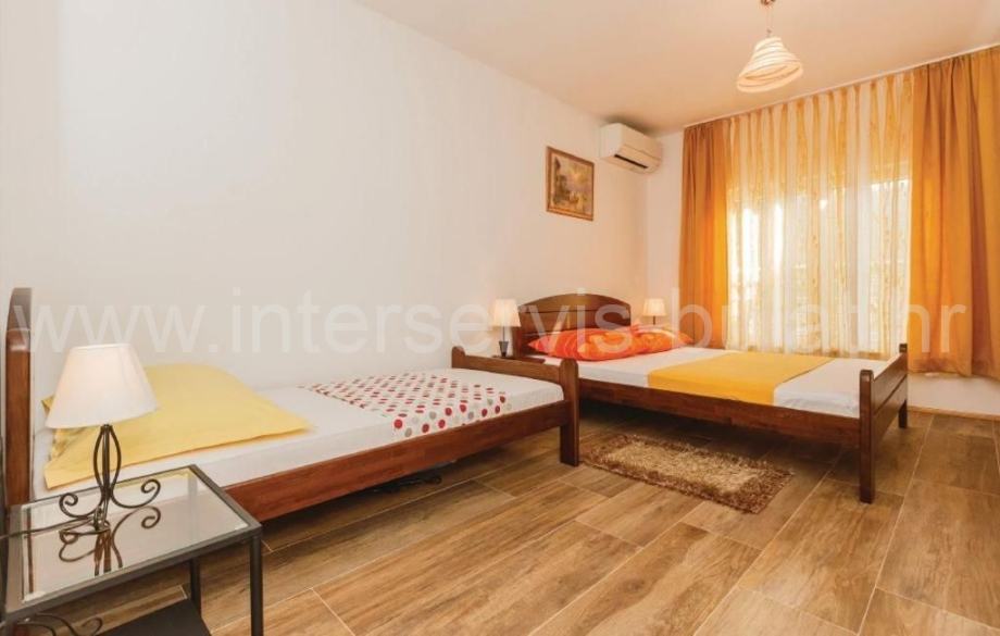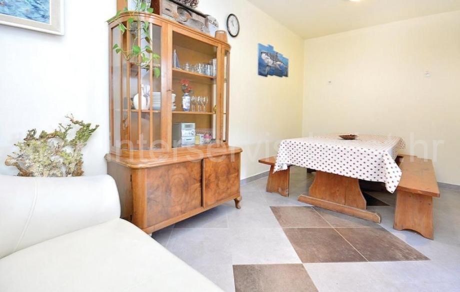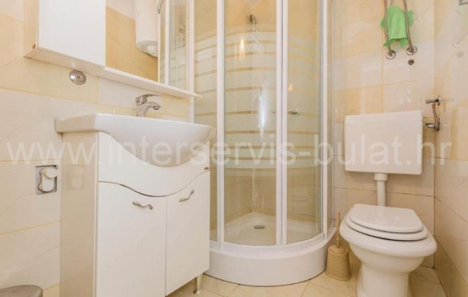 U suterenu je kompletno uređen i useljiv dvosoban stan 80m2 s terasom od 33m2. Prizemlje raspolaže s 30m2 i izlazom na terasu gdje je predviđen apartman koji je u grubim radovima. Uređen i useljiv apartman nalazi se na katu s balkonom i pogledom na more.