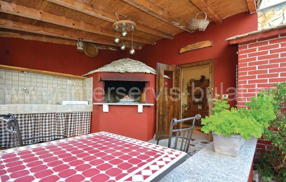 U dvorištu se nalazi bazen od 43m2 ispod kojeg je kotlovnica i gusterna s vodom kišnicom, konoba za druženje od 10m2 gdje se je hidrofor za vodu te vanjski roštilj. Okućnica je uređena i održavana, bogata zelenilom.