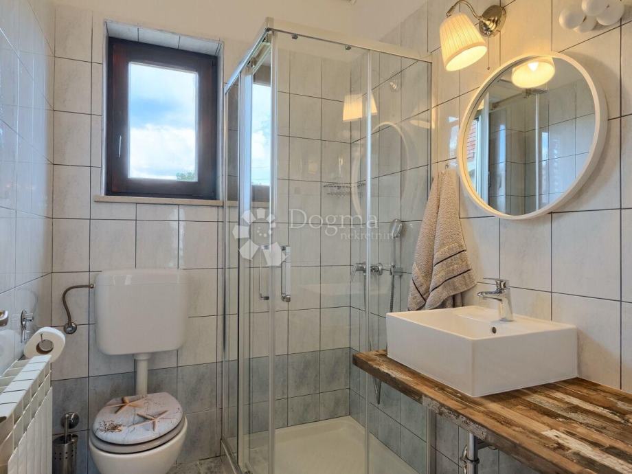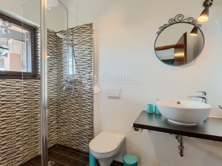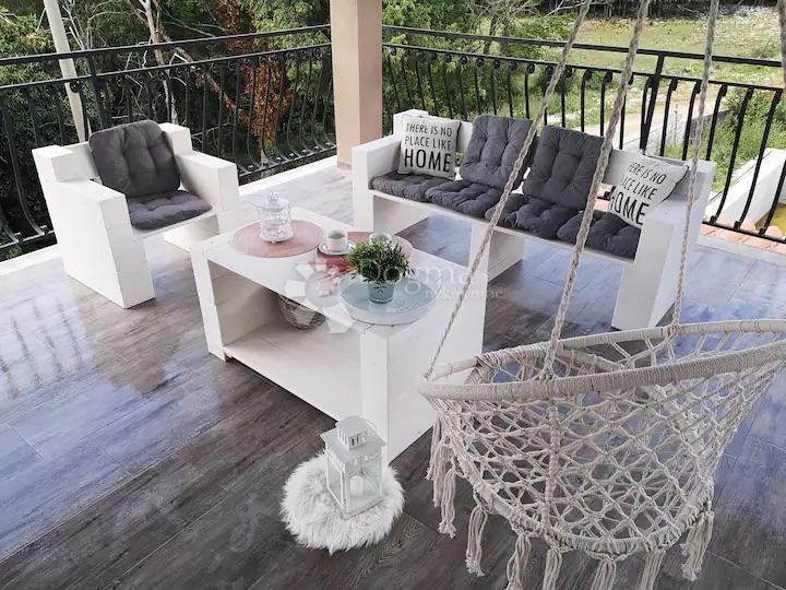 Kuća se sastoji od dnevnog boravka, 6 spavaćih soba, 4 kupaonice, kuhinje sa blagovaonom i WC-om. U prizemlju kuće se nalazi kuhinja sa blagovaonom, dnevni boravak, 3 spavaće sobe, 2 kupaonice 1 WC. Kuhinja i dnevni boravak imaju direktan izlazak na bazen i natkrivenu terasu.