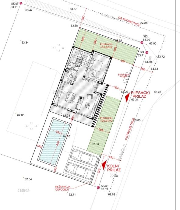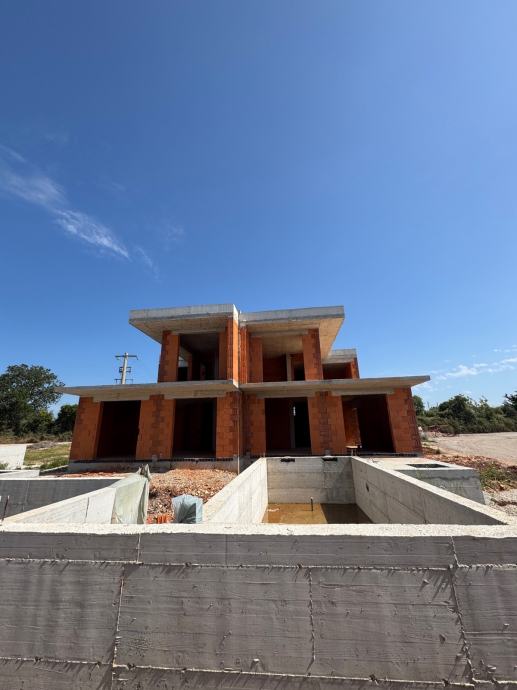 A beautiful newly built semi-detached (duplex) house is for sale in the quiet and attractive Monte Serpo neighborhood in Pula. The house features a gross area of 141 m², a net living area of 119 m², and a private swimming pool of 24 m².