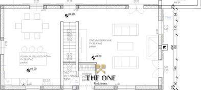Prizemlje vile sastoji se od hodnika, wc-a, ostave, dnevnog boravka, kuhinje s blagovaonicom i izlaza na natkrivenu terasu.