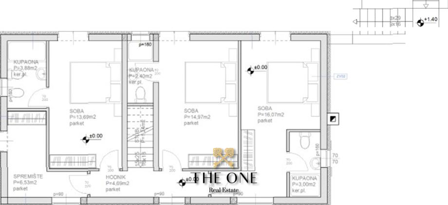 Na prvom katu vile su tri spavaće sobe, a svaka soba ima svoju kupaonicu. Sve sobe imaju izlaz na prostranu terasu s prekrasnim panoramskim pogledom.