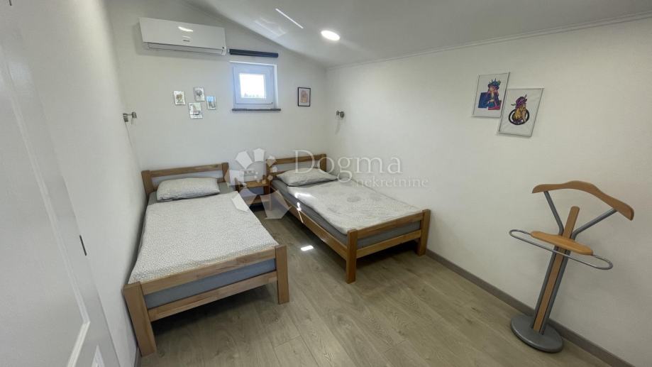 Na katu se nalaze 3 spavaće sobe, od kojih su dvije sa bračnim krevetima a jedna sa odvojenim krevetima te dvije kupaonice,