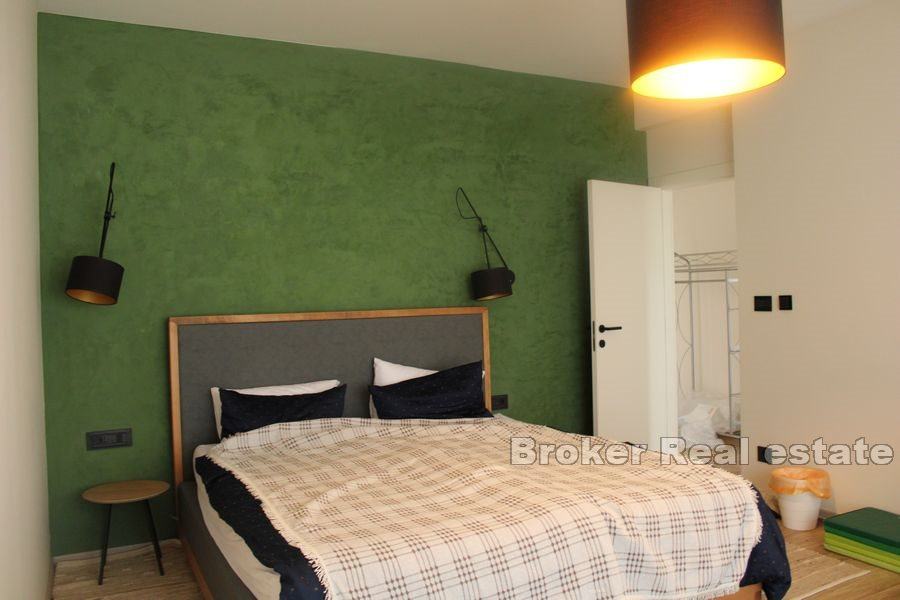 Nekretnina se prodaje potpuno namještena s namještajem i kućanskim aparatima. Kuća je opremljena klima uređajima i podnim grijanjem te je ostavljen prostor za moguću ugradnju lifta.