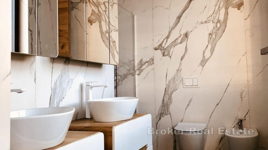 Pri izgradnji ove vile koristili su se najkvalitetniji materijali. Odlično promišljen koncept zelenila sa očaravajućom rasvjetom zaokružuje modernu arhitekturu objekta.