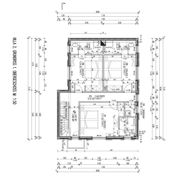 Na prvom katu se nalaze tri velike spavaće sobe s kupaonicama i mala ostava.