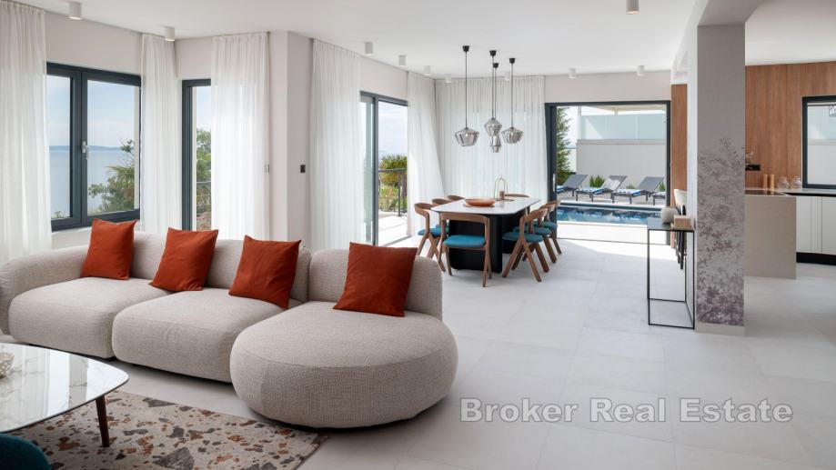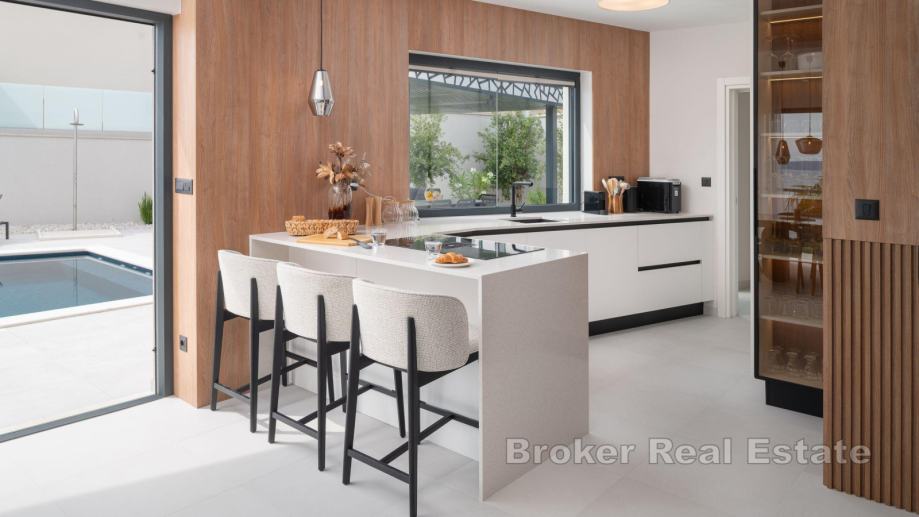 Novoizgrađena vila s bazenom, kompletno namještena i opremljena, modernog dizajna i visoke kvalitete smještena na atraktivnoj lokaciji u Podstrani.
