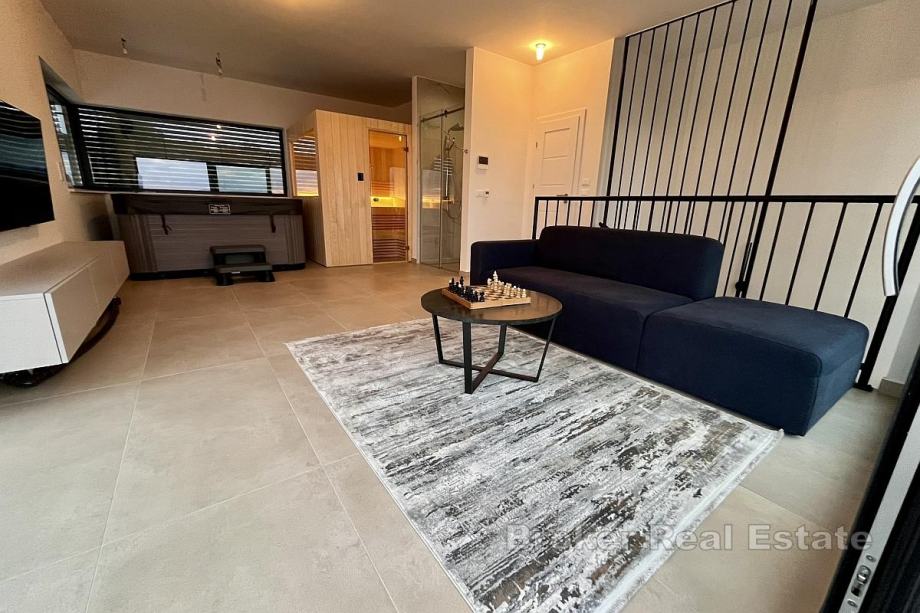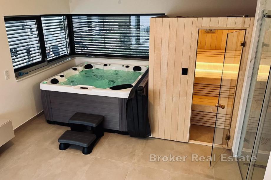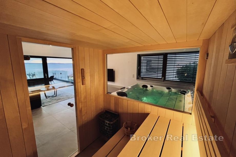 Drugi kat se sastoji wellness prostora koji sadrži saunu i jacuzzi iz kojeg se pruža pogled na more. Iz wellness prostora izlazi se na veliku terasu s otvorenim pogledom na more.