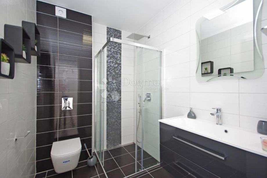Kuća je potpuno klimatizirana, modernog dizajna i prodaje se kompletno namještena kvalitetnim namještajem. Osiguran je parking za više automobila.