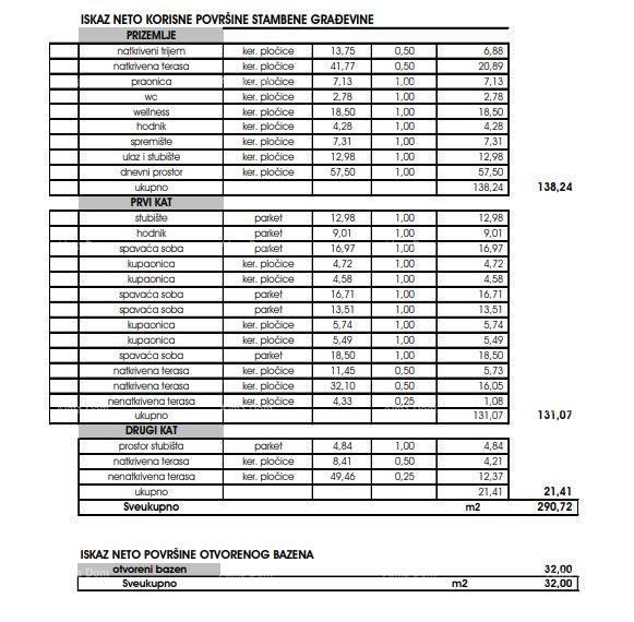 Na okučnici vile se nalazi otvoreni bazen veličine 8m*4m, predviđena dubina vode je 135 cm.