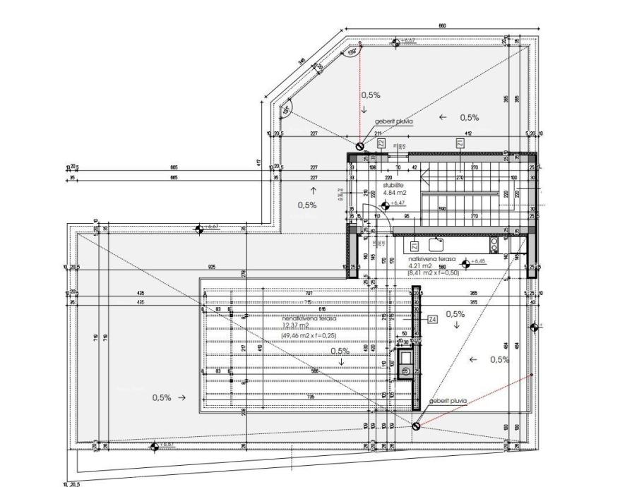 Na drugom katu nalazi se prostor stubišta, natkrivena i nenatkrivena terasa.