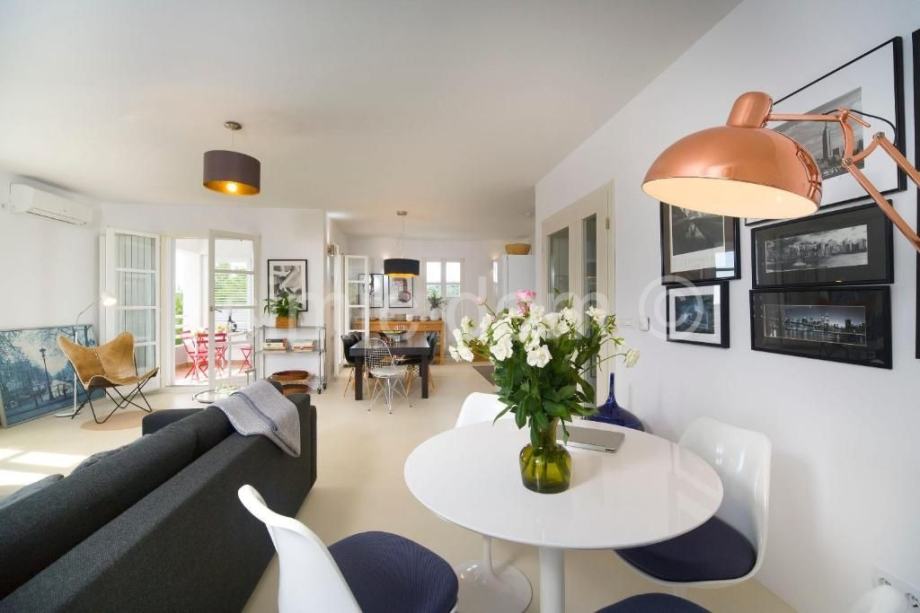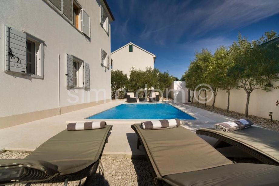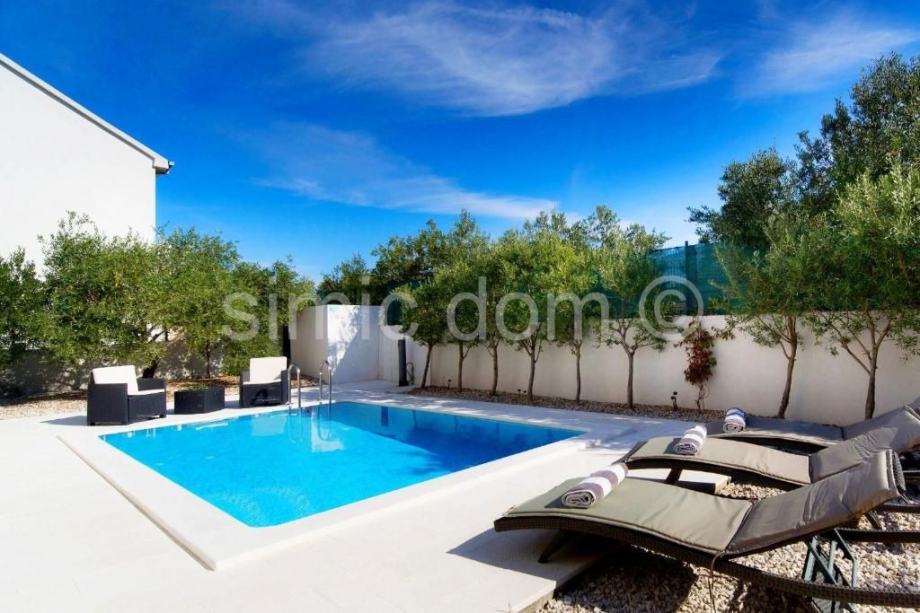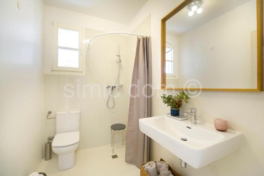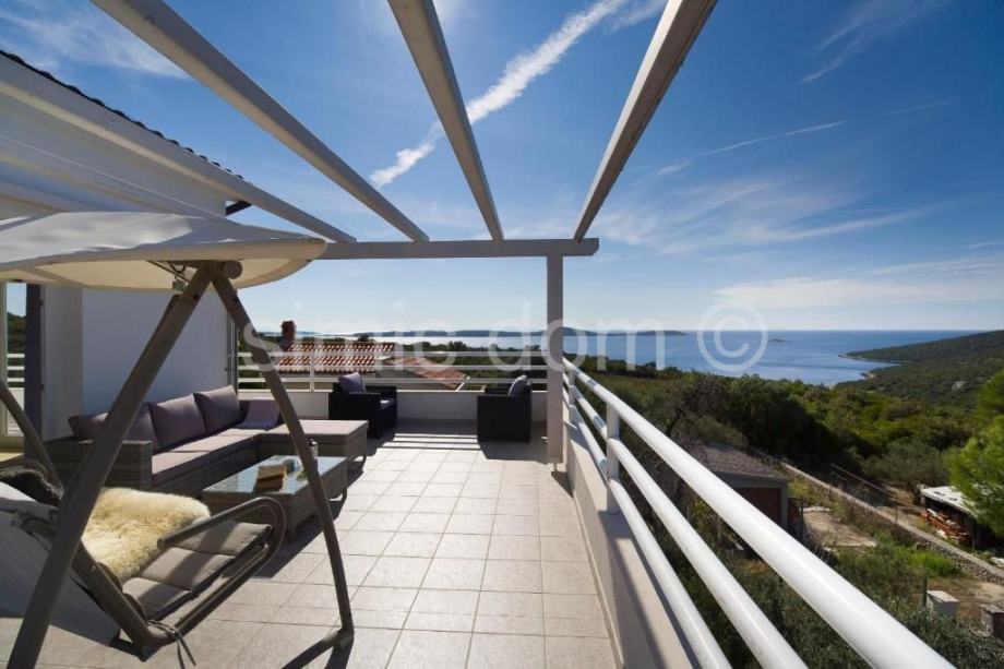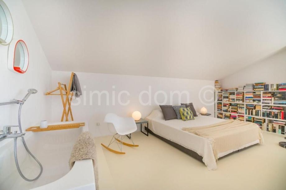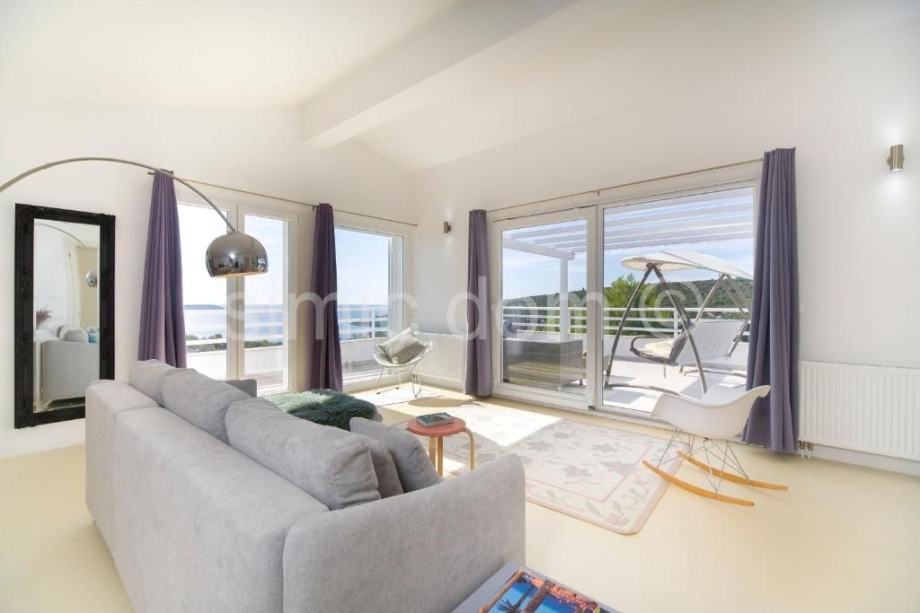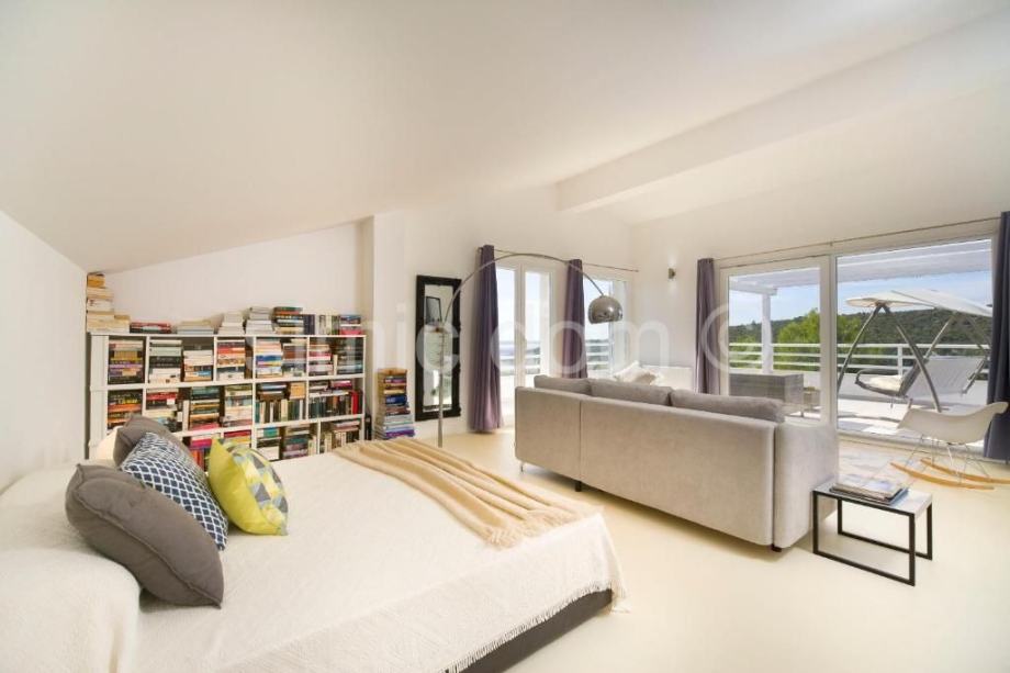 Posredujemo u prodaji uistinu prekrasne, vrlo prostrane i moderne vile u vrlo mirnoj uvali u neposrednoj blizini Vinišća. Vila se proteže etažama prizemlja, prvog kata i potkrovlja te ima ukupnu bruto površinu od 254 m2. U prizemlju se nalazi ulazni prostor te tri spavaće sobe uz dvije kupaonice. Najdonju etaže kuće okružuje impresivno uređena okućnica s prekrasnom terasom, bazenom, nekoliko maslina i ostalim tipičnim mediteranskim raslinjem. Na srednjoj su etaži, pak, vrlo prostrana kuhinja s blagovaonicom i dnevnim boravkom kao i još jedna kupaonica. I ovu etažu krase dvije manje terase koje nude nezaboravan pogled na more i cijelo okolno područje. Zadnja je etaža kuće vrlo zanimljivo i moderno osmišljena kao zasebna jedinica od spavaće sobe i kupaonice. Iz ovog se dijela kuće, točnije s velike terase, također nudi prekrasan pogled na more, a koji se zbog nagiba terena ne može zagraditi. Sama je nekretnina uređena i opremljena s puno ukusa te pruža izniman dojam vrlo funkcionalne i estetski primamljive vile. Mir lokacije, impresivan vrt (tu je i parkirni prostor), niz prekrasnih detalja, kvalitetna gradnja, prelijep pogled – jamstvo su visoke isplativosti nekretnine. Vlasništvo uredno.